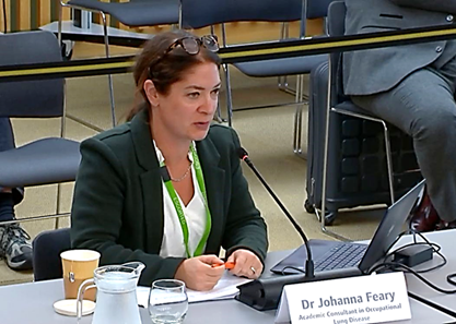Dr Johanna Feary recently spoke to MPs and peers at the All Party Parliamentary Party Group (APPG) on Occupational Safety & Health on Monday 3 November 2025, about the increasing number of patients in the UK diagnosed with silicosis caused by artificial/engineered stone.